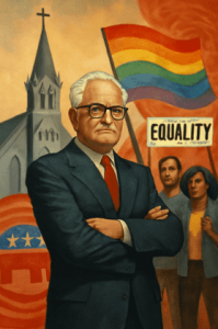 Though firmly conservative, Goldwater took an unexpectedly progressive posture on homosexual rights, particularly with relation to LGBTQ+ military involvement. Known for saying, “You don’t have to be exactly to shoot straight,” he openly attacked the military’s excluding of homosexual people and questioned the “Don’t Ask, Never Tell” policy. For him, this was a steady extension of his conviction in personal freedom and little government intervention rather than a break into liberalism. His campaign challenged the progressively popular conservative narrative that entwined religious beliefs with conventional norms, therefore highlighting the intrinsic conflict between moral legislation and conservative principles.